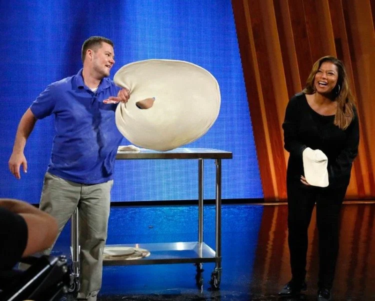 As a grade school student I started working in my grandparents pizza shop. I would watch the employees toss the dough in the air and thought it was pretty amazing! I started spinning everything from binders, to pillows, to folding chairs, and of course pizza dough! At the age of 19 I decided to compete in the World Pizza Games in Las Vegas. This is where I first met Tony and the World Pizza Champions. The rest as they say, is history. Over the last ten years I have flown all over the country and through much of Europe. I’ve also appeared on several T.V. shows including The Kathy Lee and Hoda Show, and The Queen Latifah Show. The world of pizza sure has opened the door to some of the most amazing experiences of my life!