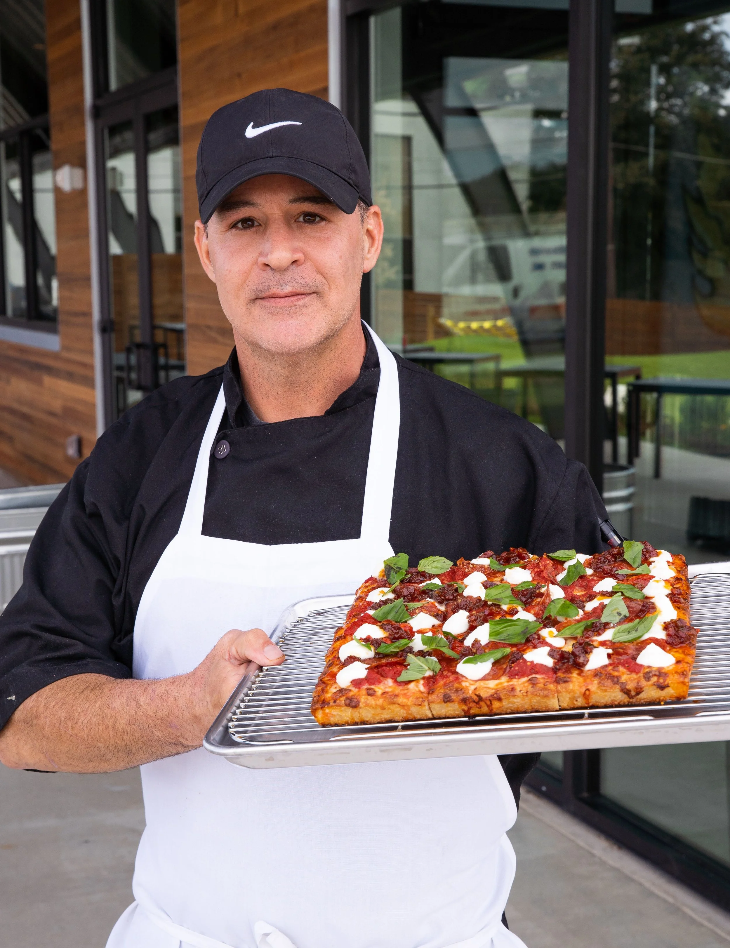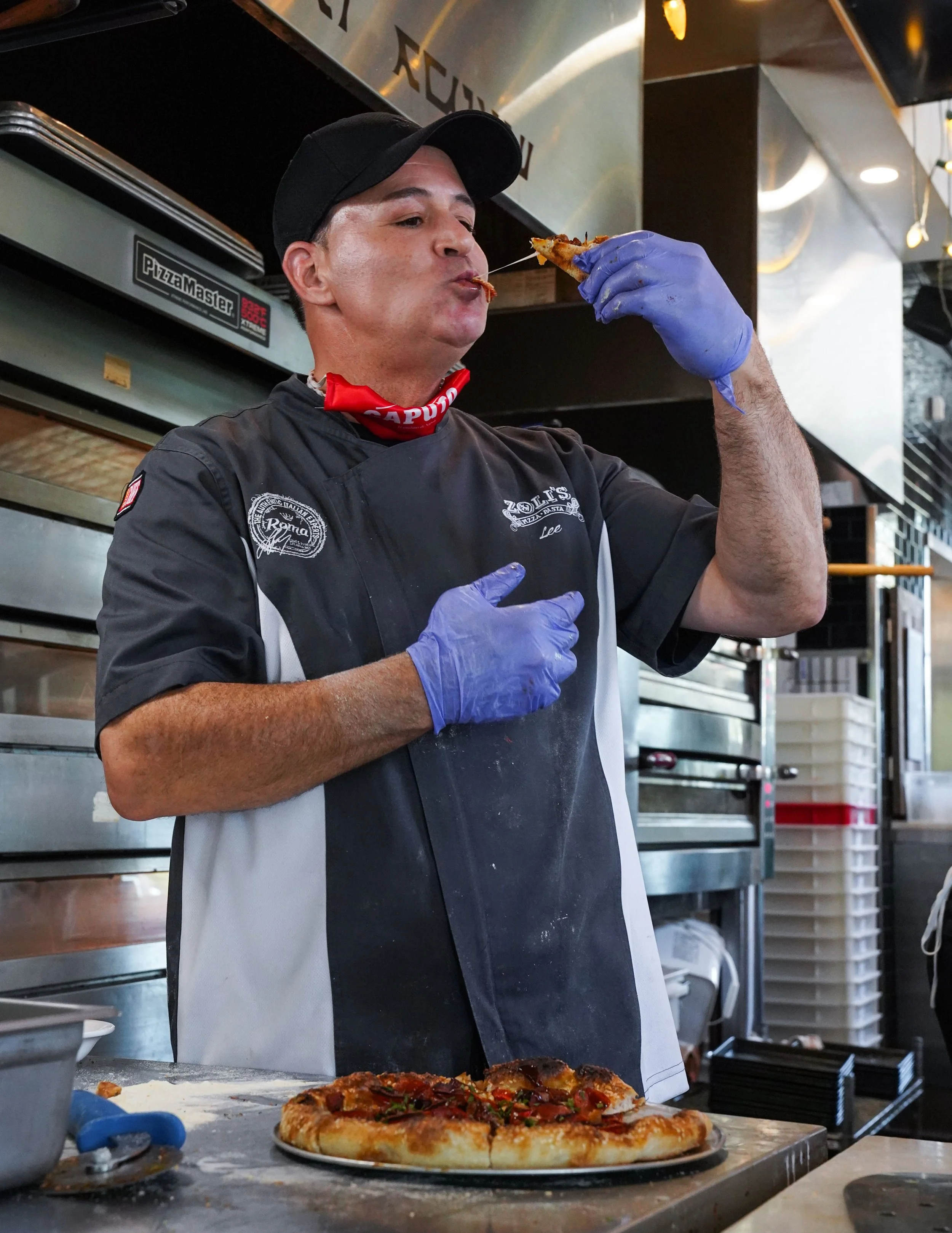 When Lee isn’t making pizza, he is spending time with his wife, Marisa, and their two dogs, Marley and Brooklyn.